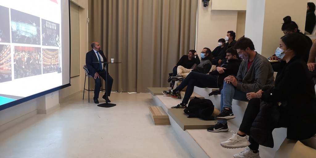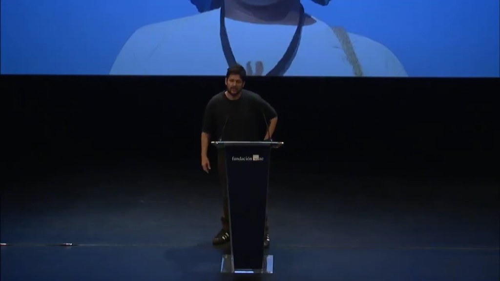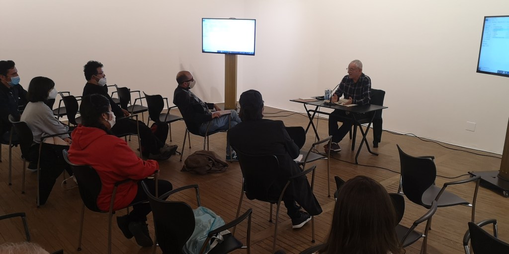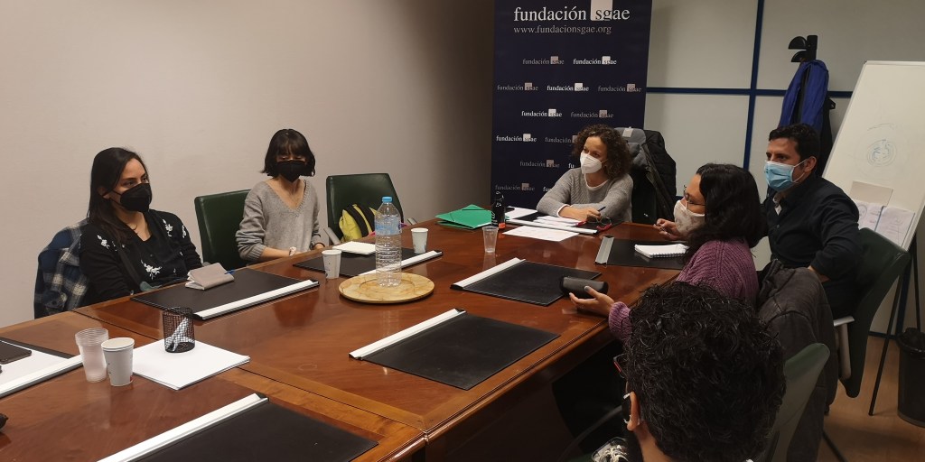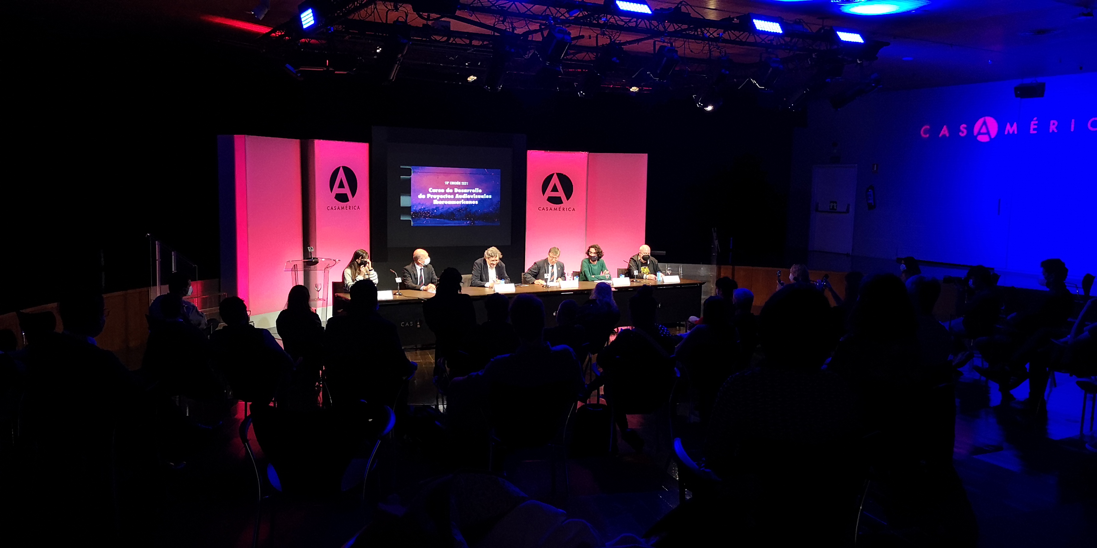 A pesar de las complicaciones propias del contexto pos-pandémico, todos y todas pudieron llegar para la inauguración del Curso el día 4 de octubre en Casa de América. En este evento, Gerardo Herrero, codirector del Curso, presidió una mesa junto a representantes de algunas de las instituciones que hacen posible este proyecto: Fundación Carolina, Fundación SGAE, DAMA. Con mucha ilusión y algún rezago del jetlag (por quienes acababan de llegar desde Latinoamérica), los y las guionistas se conocieron entre ellos/ellas y también a quienes serían sus asesores en esta primera etapa: Oliver Laxe, Tomás Aragay y Montxo Armendáriz para los largometrajes; y Arantxa Cuesta y David Muñoz para las series.