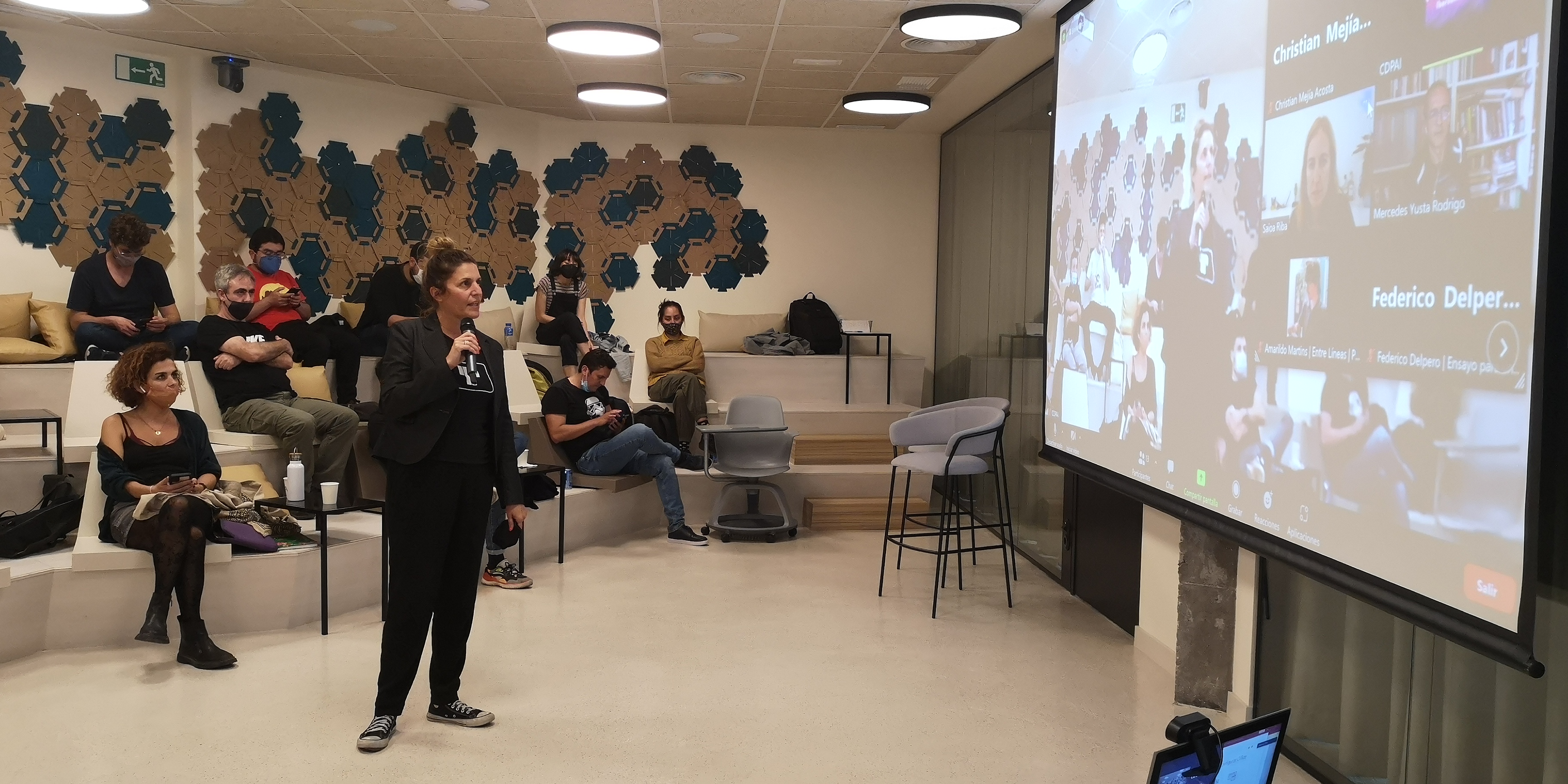 La semana final suele estar cargada de emoción y nervios ante la sesión de Pitch final. Esta edición no fue la excepción dado que los y las guionistas tuvieron la oportunidad de exponer sus proyectos ante agentes de la industria audiovisual iberoamericana (tanto presenciales -en la Sala berlanga- y virtuales -a través de un streaming en Youtube-). La Sesión se desarrolló, una vez más, en la Sala Berlanga, espacio de exhibición de audiovisuales y que fue idóneo para presentar el trabajo de nuestros seleccionados.
