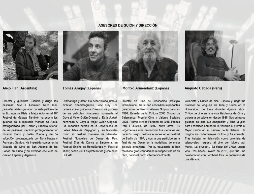 El Curso está dirigido a autores de América Latina, España, Italia y Portugal, con experiencia previa demostrada en la actividad audiovisual. Para el desarrollo del mismo cuenta con un equipo de asesores conformado por notables profesionales del medio audiovisual iberoamericano.